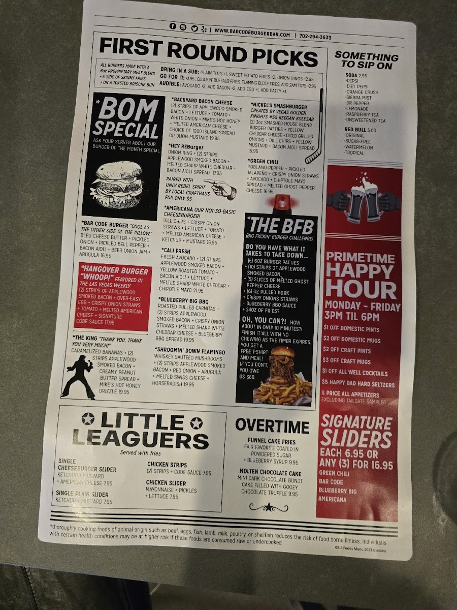 Whether you're a local or visiting Las Vegas, Bar Code Burgers makes for a must-visit culinary destination. With an eclectic menu that intertwines familiar comfort food with creative twists, your burger cravings will definitely be satisfied here. Grab some friends, share a massive burger, and indulge in the vibrant flavors that await!