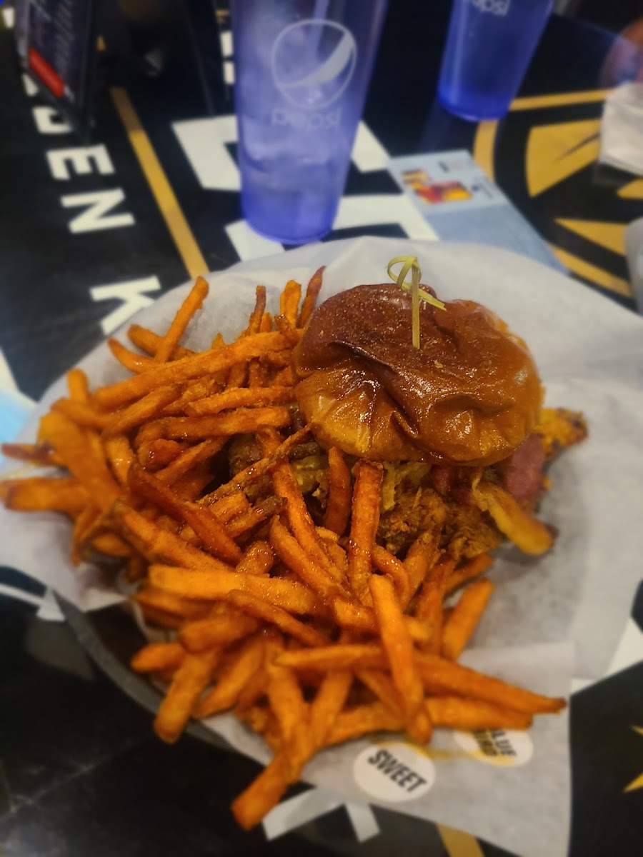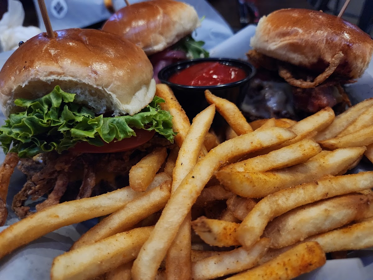 Favorites don’t stop there. Start your meal with Fried Pickles served with a spicy sriracha ranch or indulge in Cluckin Buffalo Fries, where crispy buffalo chicken bites sit atop a bed of golden skinny fries, drenched in a luxurious nacho cheese sauce and ranch drizzle. And for a sweet finish, don’t overlook the delightful Funnel Cake Fries, dusted with powdered sugar and served with luscious blueberry syrup.